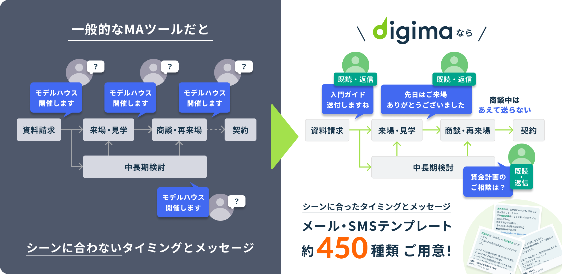 住宅検討者は長期の比較検討が当たり前。一斉送信の押し売り型では、
