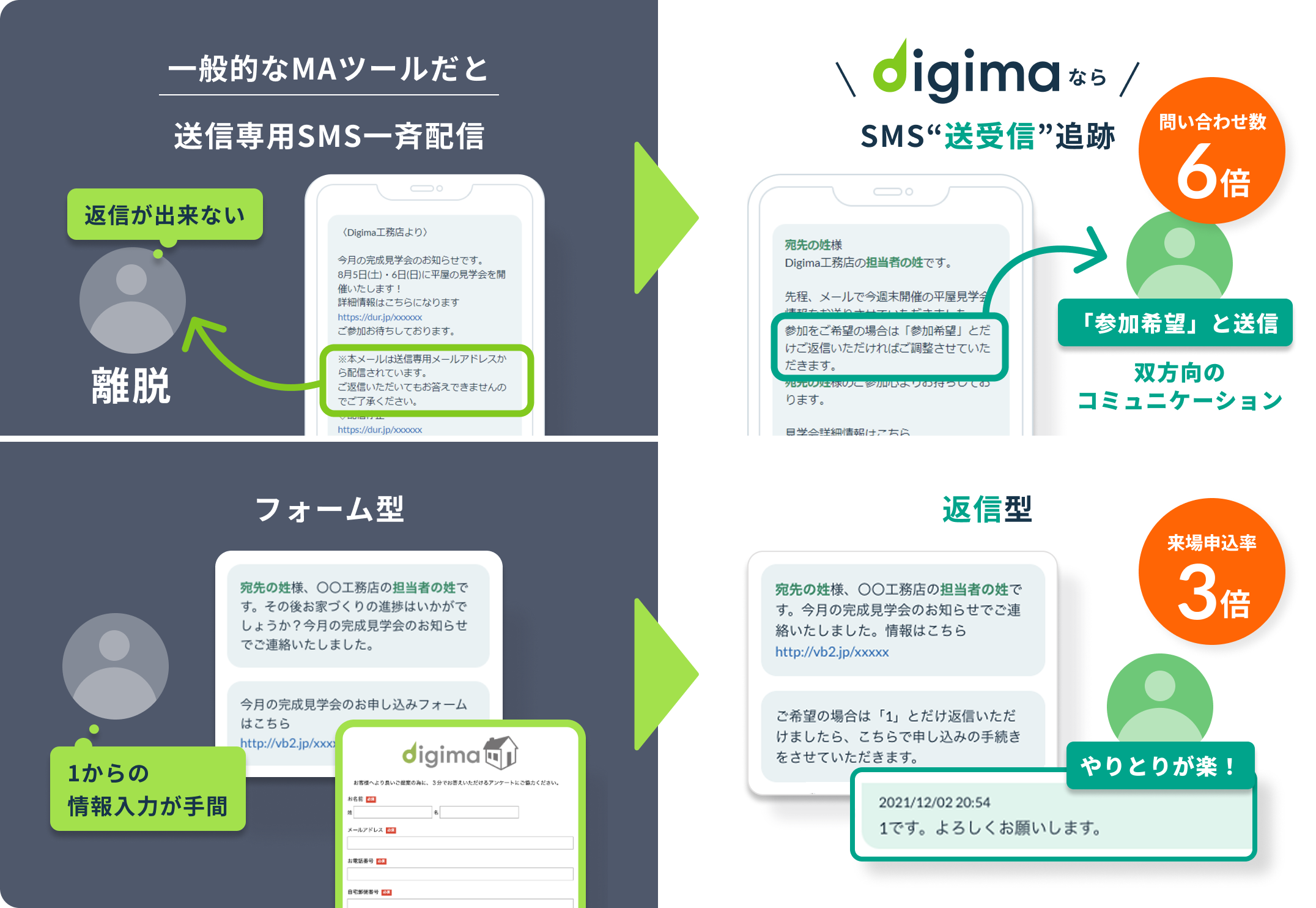 Digimaは一方通行の配信ではなく、返信・応答を前提とした自動化設計。